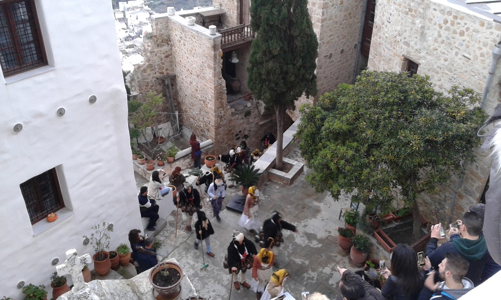 Οι ομάδες των Γέρων και όλων των μεταμφιεσμένων ανεβαίνουν στο υψηλότερο σημείο του μοναστηριού…