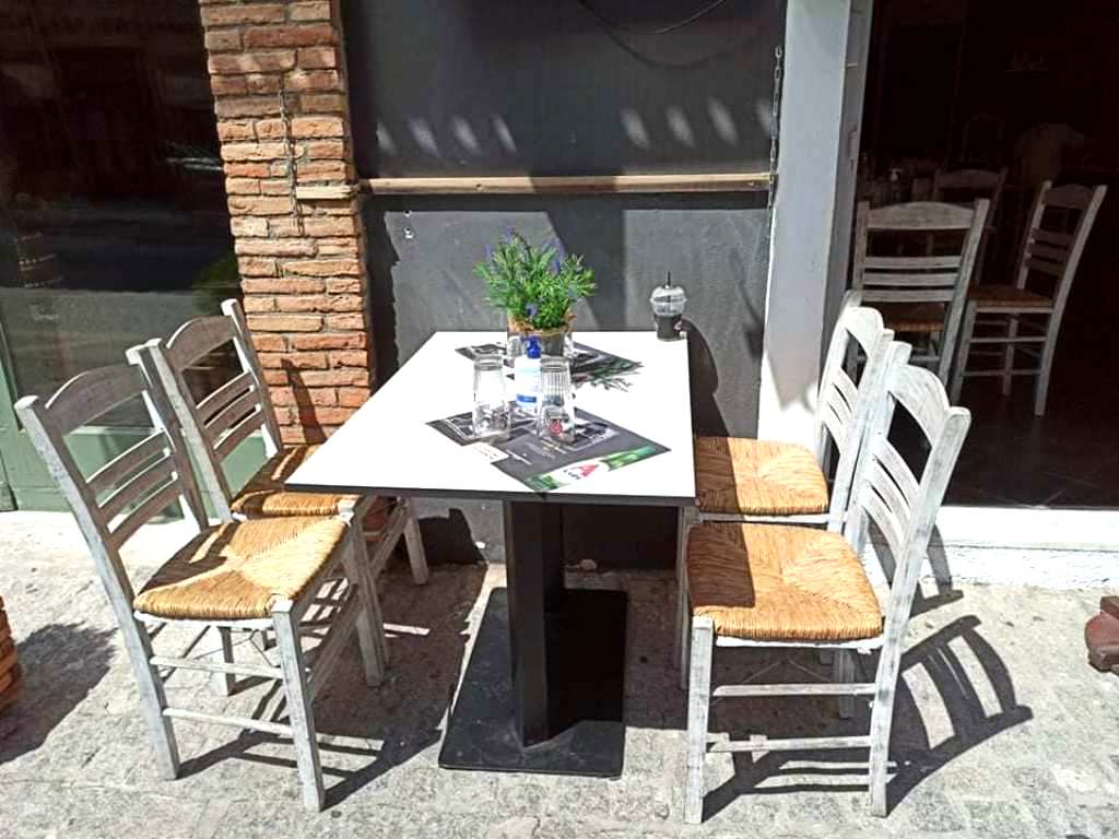 …με τις παραδοσιακές καρέκλες καφενείου, όπως συνήθως τις λέμε, με το κάθισμα-ψάθα, να δίνουν τον «αλλιώτικο» τόνο τους.