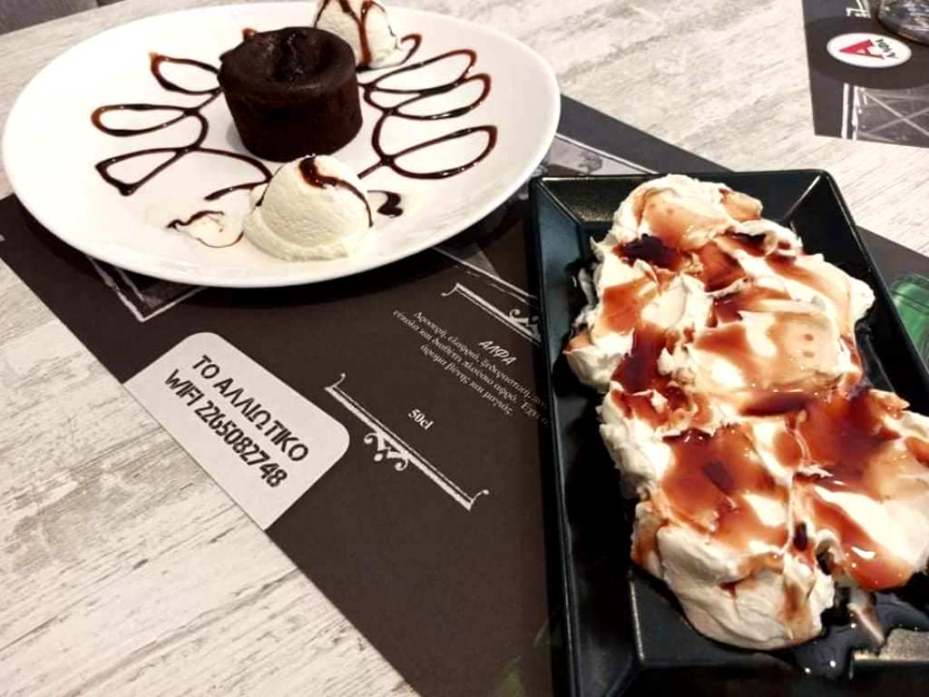Ένα γεύμα «αλλιώτικο«, που ολοκληρώθηκε με ντόπιο γιαουρτάκι και σπιτικό γλυκό του κουταλιού, αλλά και σουφλέ σοκολάτας με παγωτό.