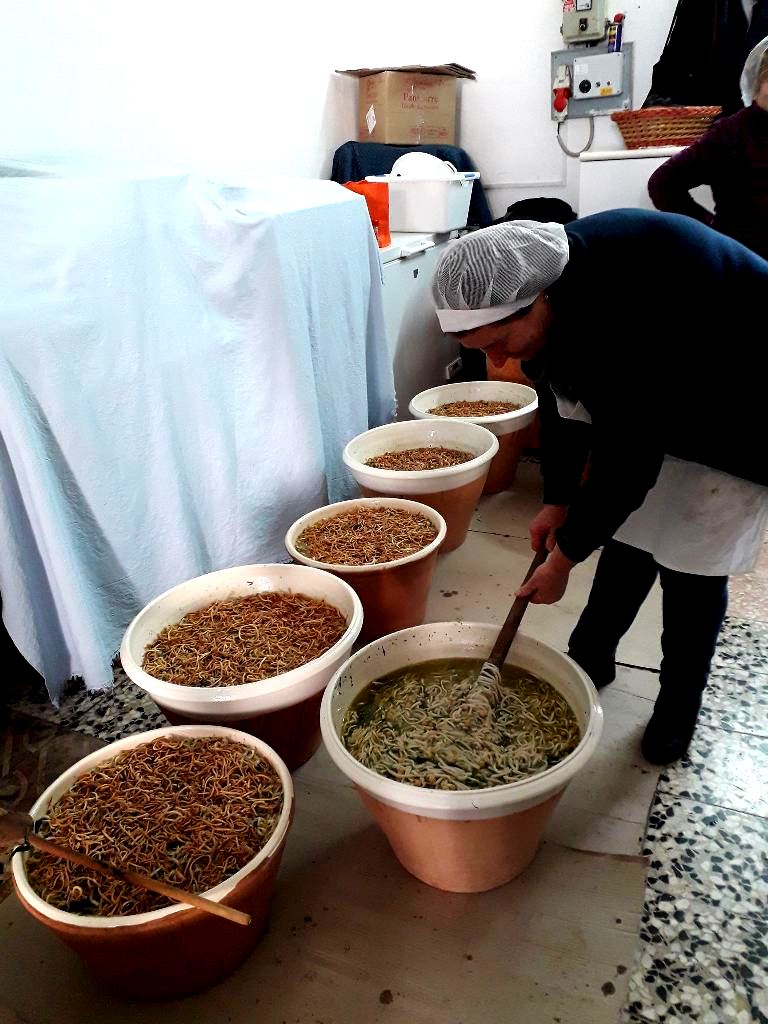 Τεράστιες ποσότητες χιροποίητων ζυμαρικών προετοιμάζονται μέρες νωρίτερα, από τις οικογένειες που έχουν αναλάβει εθελοντικά το μαγείρεμα του παραδοσιακού φαγητού massa di San Giuseppe, το γνωστό ciceri e trìa, ένα από τα πλέον αντιπροσωπευτικά πιάτα της παραδοσιακής κουζίνας του Σαλέντο…