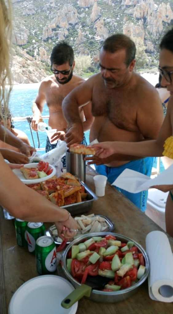 Η στάση στα Άμμουρα διαρκεί τόσο όσο χρειάζεται όχι μόνο για κολύμπι και εξερεύνηση της παραλίας ή ακόμα και για ανάβαση, για όποιον το επιθυμεί, στον Φάρο, που διαρκεί περίπου 20 λεπτά, αλλά και για φαγητό με ντόπιες κιμωλιάτικες λιχουδιές, όπως η περίφημη λαδένια, η ελληνική πίτσα. Ο καπετάνιος μας Βαγγέλης Βαμβακάρης και επί του σερβιρίσματος!