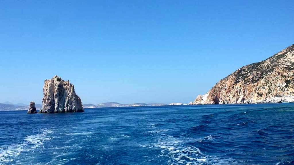 Πανοραμική άποψη της Πολυαίγου πλέοντας προς Κίμωλο.