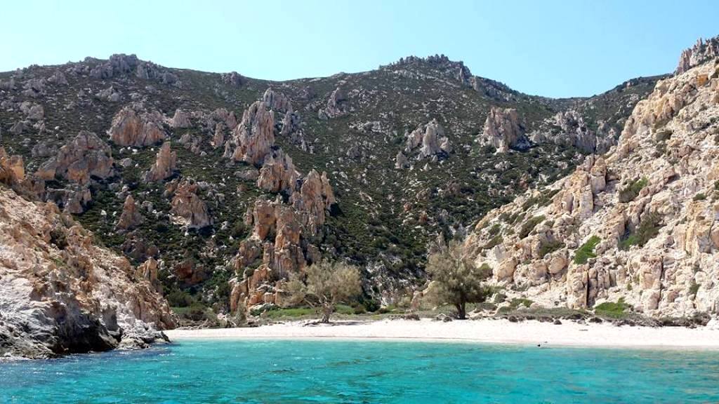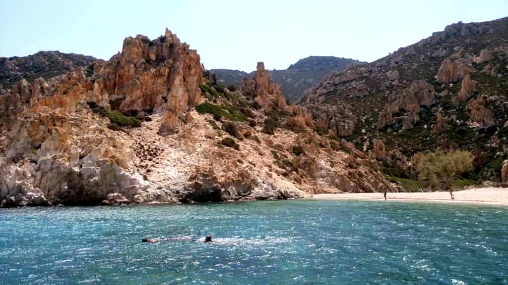 …αποτελεί πρόκληση τόσο για τους επισκέπτες που τον προσεγγίζουν κολυμπώντας, όσο και για τα άγρια κατσίκια, που προσπαθούν να ανακαλύψουν διόδους μέσα από τον δαιδαλώδη αυτό βραχότοπο. Πολύχρωμα βότσαλα και πινελιές πράσινου από τα λιγοστά αρμυρίκια, συμπληρώνουν την φυσιογνωμία της παραλίας…