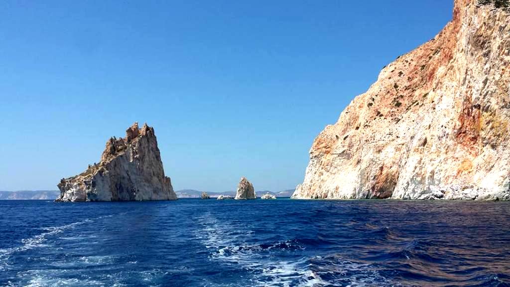 …καθώς το σκάφος παραπλέει τις ακτές του νησιού. Το πλέον εντυπωσιακό ωστόσο, είναι το σπήλαιο Φανάρα, στην βόρεια πλευρά του, το οποίο κερδίζει αβίαστα την προσοχή όχι μόνο λόγω του μεγέθους του…