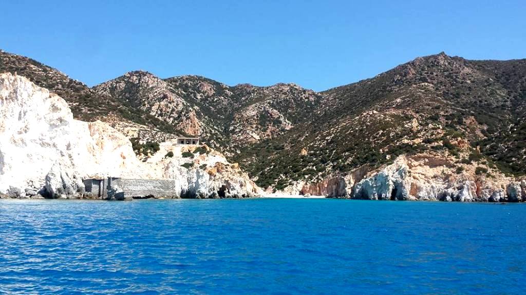 …και να επισκεφθούν ίσως την τραπεζαρία -το εγκαταλελειμμένο κτήριο στο βάθος- των μεταλλείων Ηλιόπουλου, του έτερου εκ των δύο που δραστηριοποιούνταν στην Πολύαιγο, εκεί όπου οι εργάτες γευμάτιζαν καθημερινά όλη την εβδομάδα, μιας και επέστρεφαν στην Kίμωλο μόνο κάθε Σάββατο.