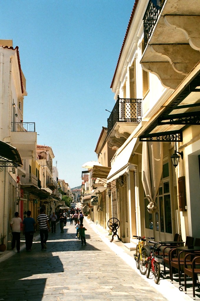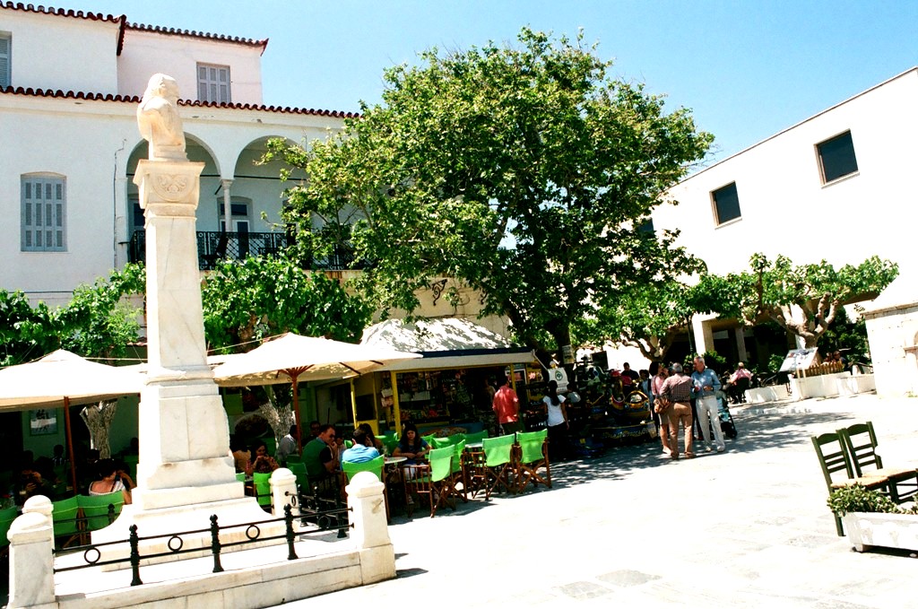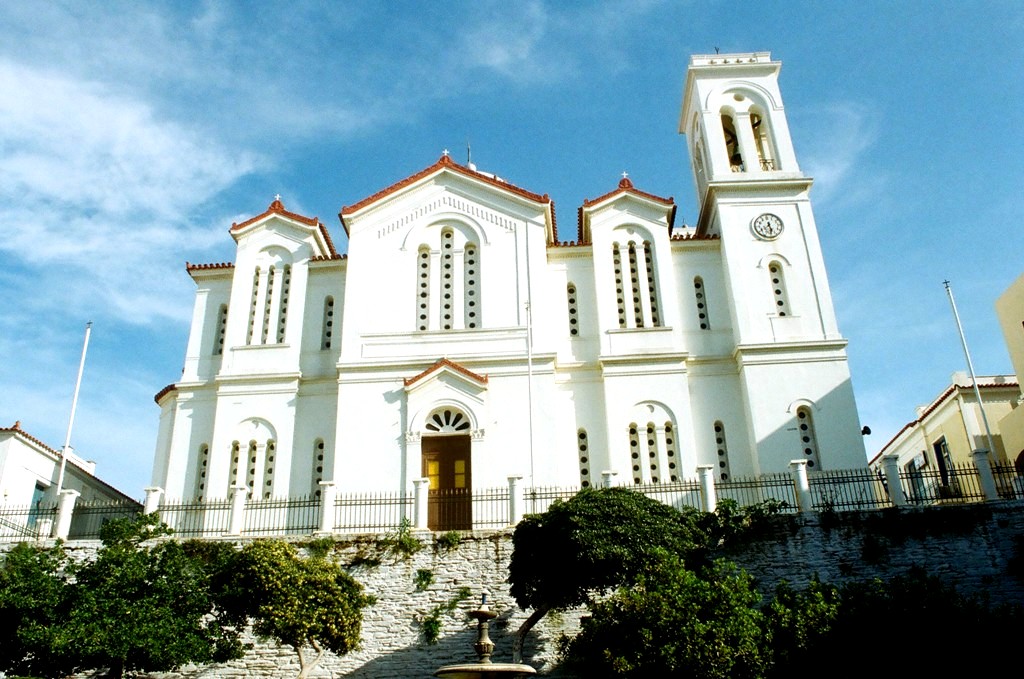 Η παλιά πόλη έχει κυκλαδίτικο χρώμα, με ήσυχα ρομαντικά στενάκια και χαμηλά σπίτια, που συνυπάρχουν αρμονικά με τα μεγαλόπρεπα αρχοντικά των εφοπλιστικών οικογενειών. Αρχοντικά και νεοκλασσικά κτήρια οριοθετούν τον κεντρικό, μαρμαροστρωμένο δρόμο της πόλης, που καταλήγει στην πλατεία Καΐρη με την μαρμάρινη κρήνη του Καμπάνη (1818) και την προτομή του Θεόφιλου Καΐρη. Από την πλατεία διερχόμαστε την στοά Πόρτα ή Οξώπορτα για να εισέλθουμε στον μεσαιωνικό οικισμό με τα βενετσιάνικα κατάλοιπά του και τις πάμπολλες κρήνες, στοές και καμάρες του. Σ’ ένα βράχο μπροστά στο λιμάνι, στη θέση Πλακούρα, η Παναγιά η Θαλασσινή, το πιο γραφικό ίσως κομμάτι της Χώρας. Αξιόλογες εκκλησίες είναι επίσης η Παναγία η Παλατιανή ή Αγία Τσουρά του 13ου αι., η Παναγία η Οδηγήτρια, η Θεοσκέπαστη, αλλά και ο μητροπολιτικός ναός του Αγίου Γεωργίου, πάνω από το Παραπόρτι.