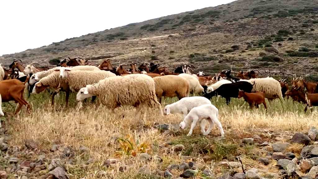 Ένα από τα κοπάδια αμνοεριφίων της οικογένειας Λογοθέτη βόσκει ευτυχισμένο στα οικογενειακά κτήματα στα Πράσα…