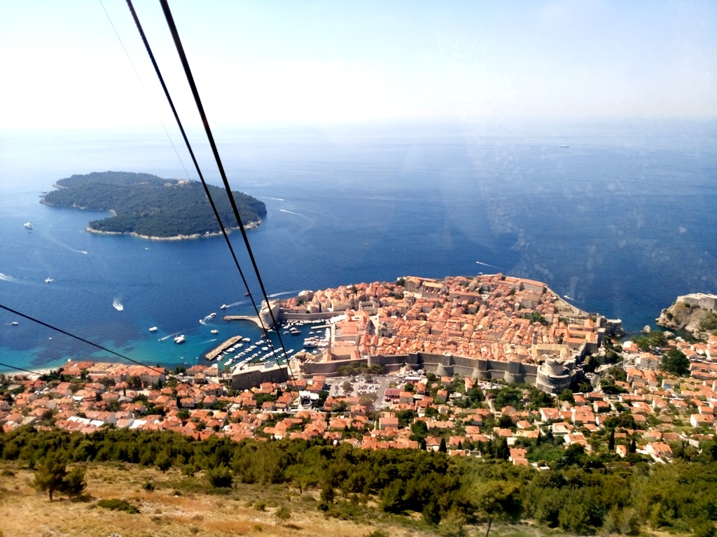 Ο λόφος Srđ είναι ιδιαίτερα δημοφιλής στους επισκέπτες της πόλης, διότι εκτός από το ίδιο το Dubrovnik, μπορούν να έχουν μία πανοραμική άποψη και του μικρού νησιού Lokrum (στο βάθος αριστερά), oι κήποι του οποίου ταυτίζονται με την παραθαλάσσια πόλη Qarth, όπως πολύ καλά γνωρίζουν οι λάτρεις της δραματικής σειράς Game of Thrones.
