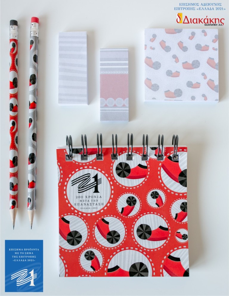 Η Διακάκης Εισαγωγική, αποκλειστικός αδειούχος της Επιτροπής «Ελλάδα 2021», παρουσιάζει την μεγάλη συλλογή αυθεντικών αναμνηστικών προϊόντων, στα οποία περιλαμβάνονται χαρτοσχολικά είδη, τσάντες, κασετίνες, παγούρια, είδη γραφής, μαγνητάκια και πολλά άλλα, διακοσμημένα με τα σχέδια και τα σήματα της Επιτροπής «Ελλάδα 2021», που στοχεύουν στην μεγαλύτερη δυνατή προβολή του εορτασμού και των προγραμματισμένων επετειακών δράσεων με αφορμή την συμπλήρωση 200 ετών από την Ελληνική Επανάσταση.