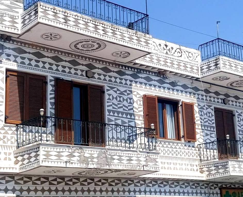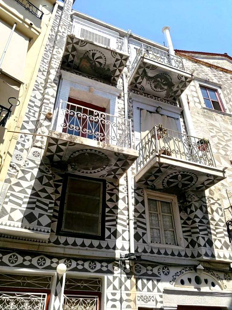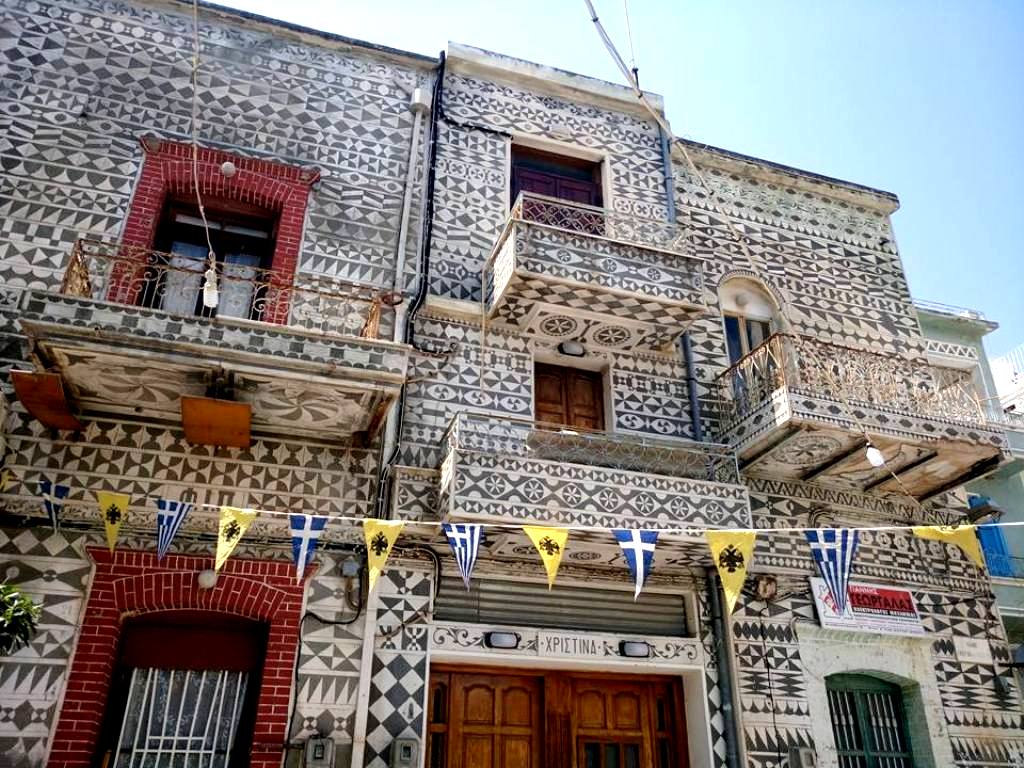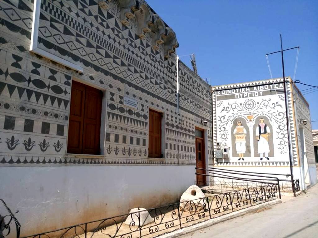 Πυργί, το περίφημο »ζωγραφιστό χωριό», ο μεγαλύτερος και σημαντικότερος μεσαιωνικός οικισμός της Χίου, που παρουσιάζει τεράστιο ιστορικό, αλλά και αρχιτεκτονικό ενδιαφέρον και βρίσκεται στην ανατολικό-μεσημβρινή πλευρά του λόφου Πατέλλα. Ο οικισμός έχει ωοειδές σχήμα και περιβάλλεται από μεσαιωνικό περίβολο, ο οποίος αποτελεί τον εξωτερικό τοίχο των ακραίων σπιτιών του. Η οχυρωματική του διάταξη οφείλεται στους Γενουάτες και σήμερα, μπορεί κανείς να διακρίνει ίχνη από το περιμετρικό, πέτρινο τείχος, με τους 4 γωνιακούς πυργίσκους, που καθιστούσαν το Πυργί ένα κλειστό, τετράπλευρο οικισμό με πυκνή δόμηση. Στο κέντρο του υψωνόταν ο πύργος, που έδωσε και τ’ όνομά του στο χωριό, αποτελούμενος από ισόγειο και δύο ορόφους, σε συνολικό ύψος 18 μέτρων. Σήμερα, ελάχιστα ερείπιά του διασώζονται, εξαιτίας κυρίως του σεισμού του 1881. Αντίθετα, καλοδιατηρημένα στέκονται ως σήμερα τόσο ο βυζαντινός ναός των Αγίων Αποστόλων του 13ου-14ου αι. με πλούσιο κεραμικό διάκοσμο και τοιχογραφίες του Αντωνίου Δομέστιχου Κυνηγού του Κρητός, όσο και η κεντρική εκκλησία του χωριού, η Κοίμηση της Θεοτόκου, χτισμένη το 1694. Ο ναός του Ταξιάρχη του 1680, η ακόμα παλαιότερη εκκλησία της Υπαπαντής και το μοναστήρι του Αγίου Γεωργίου με τον ξενώνα του, διακοσμημένο με ξυστά, συμπληρώνουν το χάρτη των εκκλησιαστικών μνημείων της περιοχής. Τα σπίτια των Πυργούσων είναι διώροφα ή τριώροφα, συνεχόμενα, στενά και ψηλά, χωρισμένα με στενά δρομάκια, που πολύ συχνά γεφυρώνουν ημικυλινδρικές καμάρες, οι οποίες δημιουργούν τα »σκεπαστά» δωμάτια ή »δοξάρια», όπως τα αποκαλούν οι ντόπιοι. Το χαρακτηριστικό γνώρισμα του Πυργίου είναι τα περίφημα ξυστά του, που κοσμούν τις προσόψεις των περισσότερων οικημάτων του χωριού. Κατάγονται είτε από τα αντίστοιχα »graffities» της Γένουας, είτε, σύμφωνα με άλλη άποψη, από την Κωνσταντινούπολη. Η διαδικασία τους είναι μεν απλή, απαιτεί όμως πείρα και υπομονή. Την μοναδική ατμόσφαιρα του χωριού συμπληρώνουν χρωματικά τα περίφημα »πυργούσικα» ντοματάκια, που περασμένα σε κλωστή από τα κοτσανάκια τους -για να μην τραυματιστεί η φλούδα τους- κρέμονται σαν τεράστια λαχταριστά κομπολόγια στα μικρά μπαλκονάκια των σπιτιών. Πολύ κοντά στο Πυργί βρίσκονται τα ερείπια του χωριού Μέναγρος, που οι κάτοικοι του το εγκατέλειψαν την εποχή της Γενουατοκρατίας, προκειμένου να εγκατασταθούν στο Πυργί.