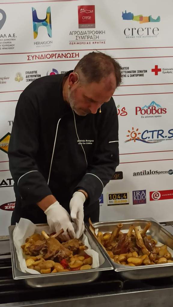 …ετοιμάζοντας χοιρινό κότσι σιγοψημένο μέσα σε extra παρθένο ελαιόλαδο με σάλτσα από πετιμέζι, μαζί με πατάτες, σύκα, γραβιέρα και αρωματικά Κρήτης. Η ομάδα παρασκεύασε επίσης λουκούμια Μεσσαράς και τυροζούλι γεμιστό με μέλι, κανέλα και καρύδια.