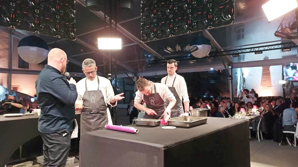Ο chef με την ομάδα του ετοίμασαν ζωντανά και επί σκηνής το εμβληματικό πιάτο «Φιλέτο μπακαλιάρου με φύκια από την περιοχή Le Croisic -δυτικά της Νάντης στα παράλια του Ατλαντικού-…
