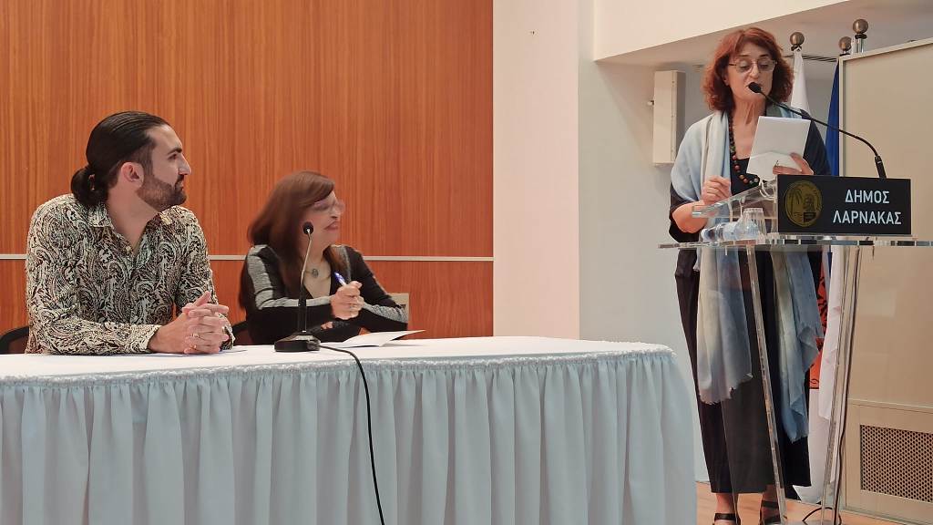 Αμέσως μετά η Ελένη Αρτεμίου Φωτιάδου, δραστήρια ποιήτρια και συγγραφέας, Πρόεδρος της Οργανωτικής Επιτροπής και Μέλος της Επιστημονικής Επιτροπής του Διεθνούς Φεστιβάλ Ποίησης Λάρνακας δίνει το εναρκτήριο λάκτισμα για την βιβλιοπαρουσίαση…