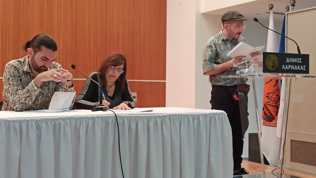 Το 1ο Διεθνές Φεστιβάλ Ποίησης Λάρνακας –διαβάστε εδώ το αναλυτικό άρθρο μας– μας μάγεψε με συγχορδίες χρωμάτων, μουσικών ήχων και ποιητικών λέξεων, κατά τη διάρκεια της τριήμερης διοργάνωσής του, που πραγματοποιήθηκε από τις 29 Απριλίου έως και την 1η Μαΐου στην Λάρνακα της Κύπρου και περιελάμβανε μία πληθώρα εξαιρετικών πνευματικών και πολιτιστικών εκδηλώσεων και παράλληλων δράσεων, από απαγγελίες ποιημάτων και εκτελέσεις μελοποιημένων ποιητικών έργων, έως επιστημονικές ανακοινώσεις, συζητήσεις στρογγυλής τραπέζης και έκθεση ζωγραφικής, που έστεψαν με πλήρη επιτυχία την πρώτη διοργάνωση του πολυαναμενόμενου αυτού θεσμού. Το σύνολο των δραστηριοτήτων του Φεστιβάλ, στο οποίο συμμετείχαν 36 ποιητές και ποιήτριες από την Κύπρο, την Ελλάδα και το εξωτερικό -και τους οποίους θα αναφέρουμε αναλυτικά στην συνέχεια- φιλοξενήθηκε σε δύο σημαντικούς πολιτιστικούς χώρους της Λάρνακας, στο Δημοτικό Θέατρο «Γ. Λυκούργος» και στο Πολιτιστικό Κέντρο «Αμμόχωστος» – Στέγη Γραμμάτων και Τεχνών. Για την πρώτη χρονιά διεξαγωγής του Φεστιβάλ ορίστηκε ως θεματικός του άξονας το τρίπτυχο«Λόγος – Μνήμη – Ταξίδι».
