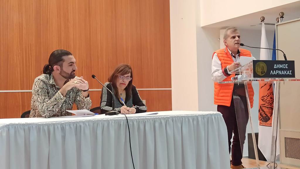 Στο βήμα ο Γραμματέας του Παγκύπριου Ομίλου Λαϊκών Ποιητών και Φίλων της Ποίησης Κοσμάς Οικονόμου για έναν σύντομο χαιρετισμό…
