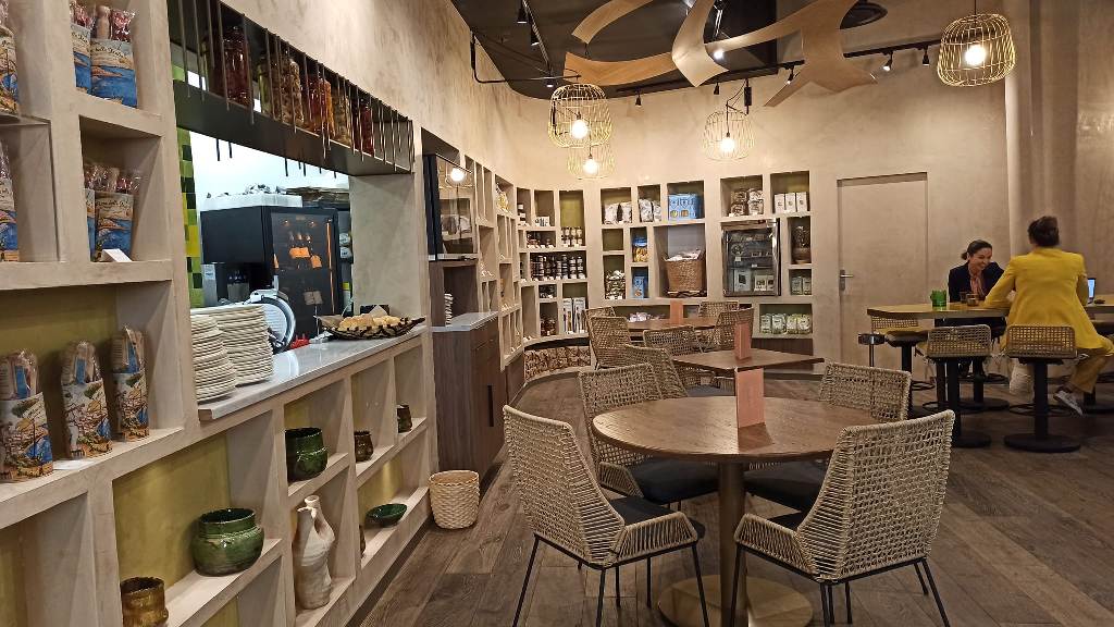 Το decor παραπέμπει στην δεκαετία του ’80 -πάντα όμως θυμίζοντας Μεσόγειο– και φέρει την υπογραφή της Γαλλίδας αρχιτέκτονος και σχεδιάστριας Réda Amalou.