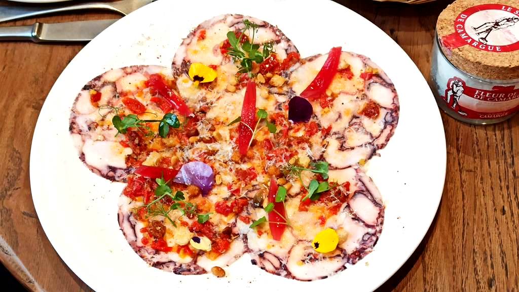 Carpaccio χταποδιού ήταν το πρώτο πιάτο που έφθασε στο τραπέζι μας…