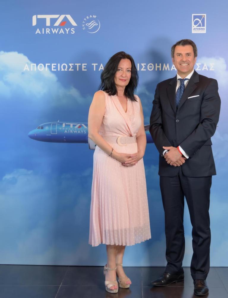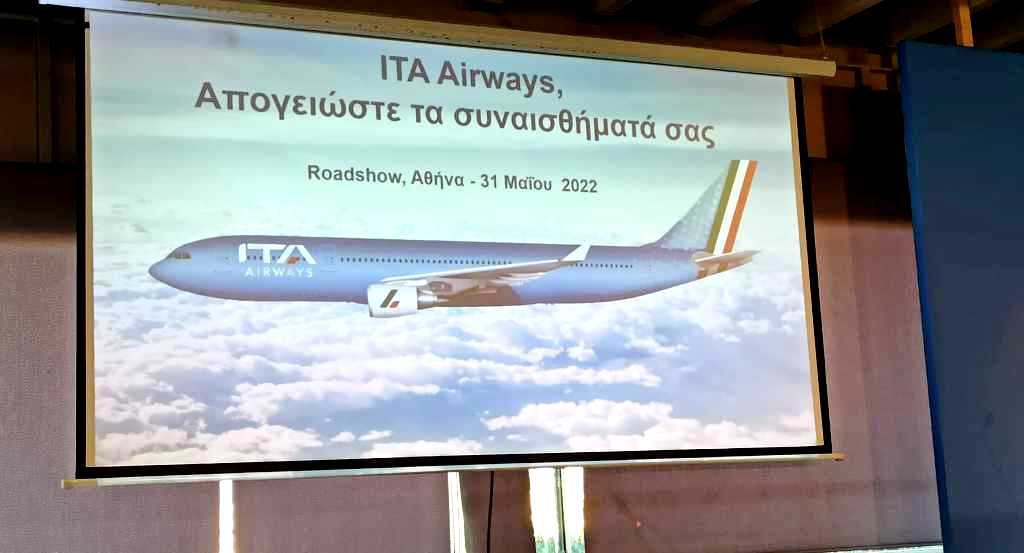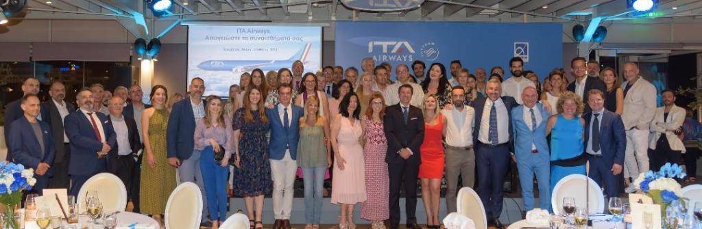 Στο Eleon Loft, με εκπληκτική θέα στην Ακρόπολη και το Λυκαβηττό, που γίνεται ακόμα πιο μαγευτική την ώρα του ηλιοβασιλέματος, η ITA Airways, ο νέος εθνικός αερομεταφορέας της Ιταλίας παρουσίασε το πρόγραμμα πτήσεων από και προς την Ελλάδα για την καλοκαιρινή περίοδο 2022, σε εκπροσώπους των ελληνικών Μ.Μ.Ε., καθώς και σε επιχειρηματικούς συνεργάτες της στην ελληνική αγορά. Στην εκδήλωση αυτή, που πραγματοποιήθηκε με τη συνεργασία του Διεθνούς Αερολιμένα Αθηνών (Δ.Α.Α.) παρευρέθηκαν, εκπροσωπώντας την ITA Airways, ο Pierfrancesco Carino, Αντιπρόεδρος Διεθνών Πωλήσεων, ο Aldo D’Elia, Διευθυντής Ανάπτυξης Διεθνών Πωλήσεων και βέβαια η τοπική ομάδα της ITA Airways, που εδρεύει στην Αθήνα. Από πλευράς του Δ.Α.Α. παρευρέθηκε η Ιωάννα Παπαδοπούλου, Διευθύντρια Επικοινωνίας και Marketing.