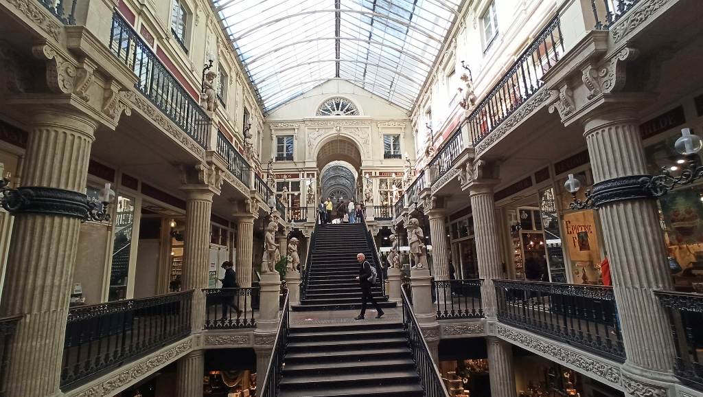 Αυτή η περίτεχνη εμπορική στοά χτίστηκε το 1843 και παραμένει αμετάβλητη ως τον 21ο αιώνα. Κατασκευασμένοι με απότομη κλίση, οι τρεις όροφοί της πλαισιώνονται από πολλά καταστήματα και μια μνημειώδη διακοσμητική σκάλα, με τα νεοκλασσικά της αγάλματα να ακουμπούν τάχα αδιάφορα στα σιδερένια φώτα.
