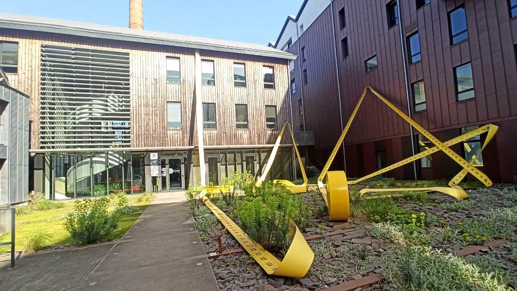 …λίγο πριν αναμετρηθούμε με αυτήν την υπερμεγέθη μεζούρα, απαραίτητο εργαλείο για πολλά επαγγέλματα, που απλώνεται στην αυλή των νέων κεντρικών γραφείων της κατασκευαστικής εταιρείας Aethica. Στην καρδιά του Île de Nantes, αυτό το έργο φαίνεται σαν ένα μνημείο αφιερωμένο στην απλότητα ενός καθημερινού εργαλείου, με την υπογραφή της Lilian Bourgeat, η οποία προσπαθεί σκληρά να ξεπεράσει τα συνηθισμένα, τόσο κυριολεκτικά όσο και μεταφορικά, μεταμορφώνοντας κοινά αντικείμενα σε έργα εξαιρετικής και σχεδόν εικονικής κατάστασης.