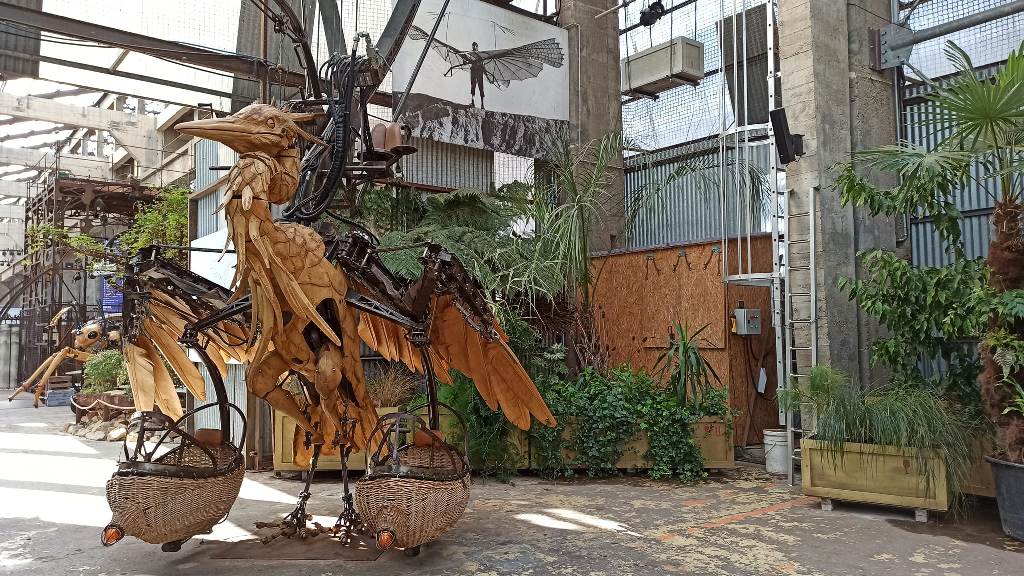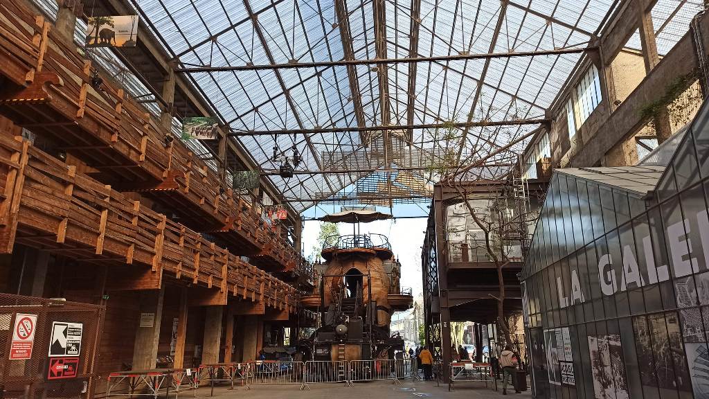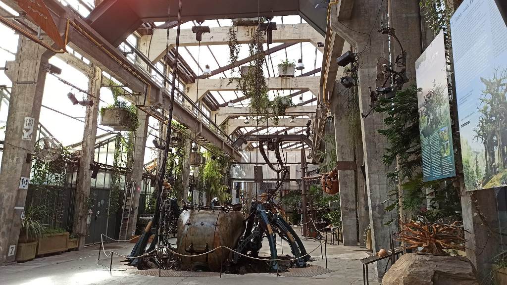Λίγα μόλις μέτρα πιο πέρα αντικρίζουμε επιτέλους το περίφημο Les Machines de l’île de Nantes -Τις Μηχανές του Νησιού της Νάντης-, ένα πολιτιστικo-τουριστικό project που στεγάζεται στα παλιά κτήρια των πρώην ναυπηγείων της Νάντης, τα οποία χρησιμοποιήθηκαν στη συνέχεια και ως επιχειρηματικοί χώροι.