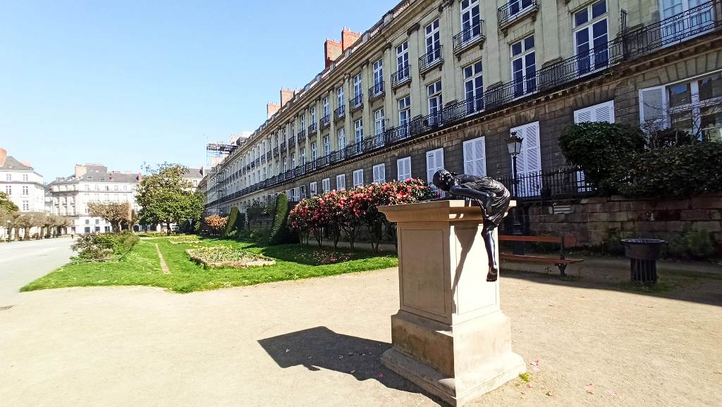 …στην περιοχή Quai Turenne -όνομα προς τιμήν Γάλλου Στρατάρχη-, ενός πεζόδρομου στο κέντρο της Νάντης, που υπήρξε η παλιά προκυμαία του Λίγηρα, βόρεια του νησιού Feydeau. Μέχρι τη δεκαετία του 1990, η προβλήτα Turenne ήταν ακόμα δρόμος κυκλοφορίας οχημάτων, ενώ σήμερα χαρακτηρίζεται από «πράσινες τάφρους» πλάτους περίπου 30 μέτρων, που αποτελούνται από προκλητικό για χαλάρωμα γκαζόν, δέντρα και θάμνους, φέρνοντας αβίαστα στο νου τις όχθες του Λίγηρα…
