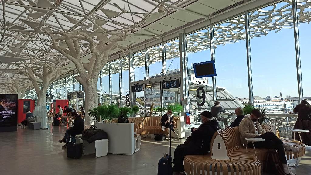 Στο εσωτερικό του Σιδηροδρομικού Σταθμού με έναν τρόπο έχει εισέλθει η φύση, καθώς 18 λευκά τσιμεντένια δέντρα όχι μόνο στηρίζουν τη στέγη, αλλά δημιουργούν και μια πανέμορφη προσομοίωση χιονισμένου δάσους, την ίδια στιγμή που τα τεράστια παράθυρα προσφέρουν πανοραμική θέα προς την πόλη και τα αξιοθέατά της.