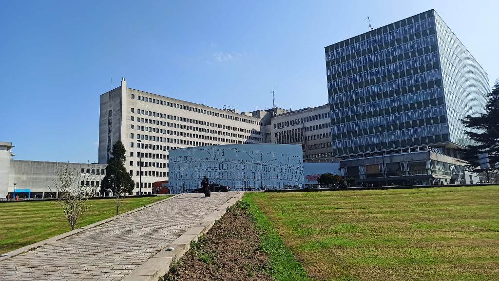 …έχοντας ως φόντο το Πανεπιστημιακό Νοσοκομείο της Νάντης, που ολοκληρώθηκε την περίοδο 1920-1930.