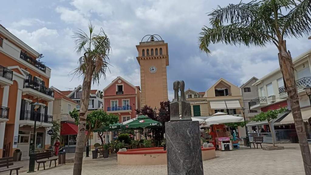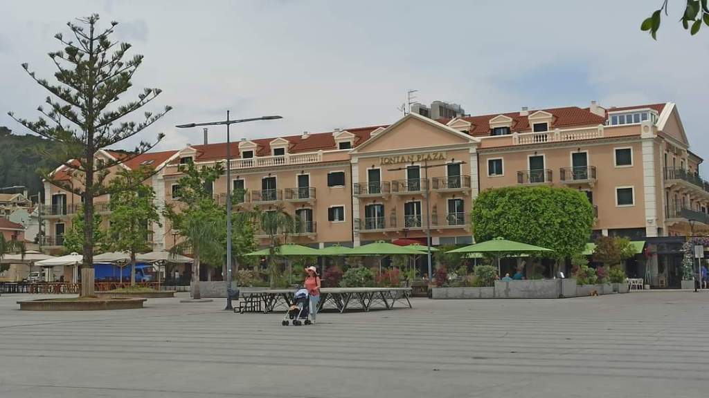 …στέκεται ακριβώς απέναντι στην κεντρική πλατεία του Ληξουρίου, τόπο συνάντησης για ντόπιους και επισκέπτες της πόλης.