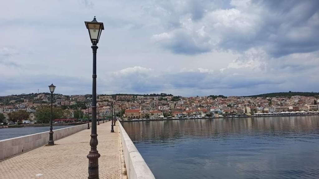 Από το ανατολικό άκρο της γέφυρας η θέα προς το Αργοστόλι είναι απρόσκοπτη…