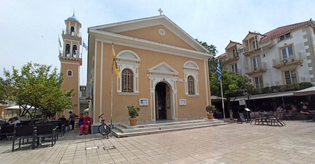 Λίγο παρακάτω βρίσκεται η ορθόδοξη εκκλησία του Αγίου Σπυρίδωνα -πριν τους σεισμούς βρισκόταν ακριβώς απέναντι από την σημερινή της θεση-…