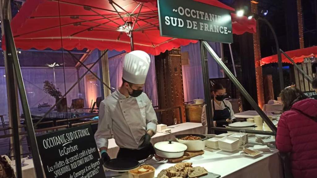 Στο περίπτερο του Biarritz δοκιμάσαμε tortillas, χταπόδι ψητό με πιπεριές Espelette, που καλλιεργούνται στην κοινότητα Espelette, του διαμερίσματος Pyrénées-Atlantiques, αλλά και μοσχάρι axoa, ένα τυπικό πιάτο της Χώρας των Βάσκων από μοσχαρίσιο κιμά και πιπεριές τσίλι. Τέλος, το τυρί Ossau-Iraty -το όνομα του οποίου αντικατοπτρίζει τη γεωγραφική του θέση, την κοιλάδα Ossau στο Béarn και το δάσος Irati-, συνοδευμένο με μαρμελάδα από μαύρο κεράσι.