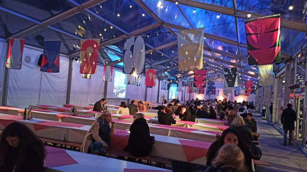 Η τεράστια αίθουσα – εστιατόριο, όπου οι πλέον των 1.500 συμμετεχόντων στο «Rendez vous en France», απολάμβαναν με ησυχία τα προσφερόμενα είδη από το περίπτερο κάθε γαλλικής Περιφέρειας.