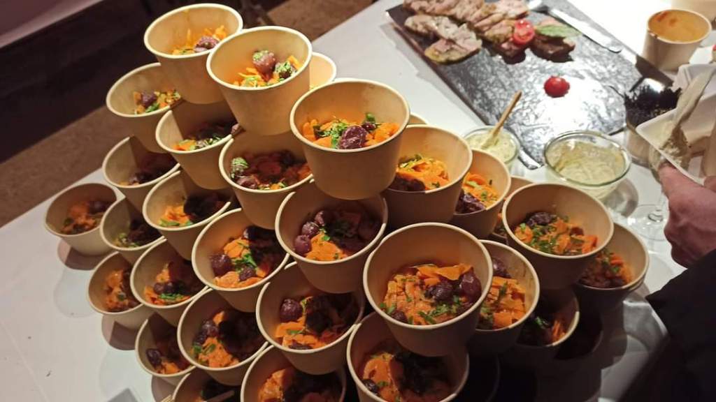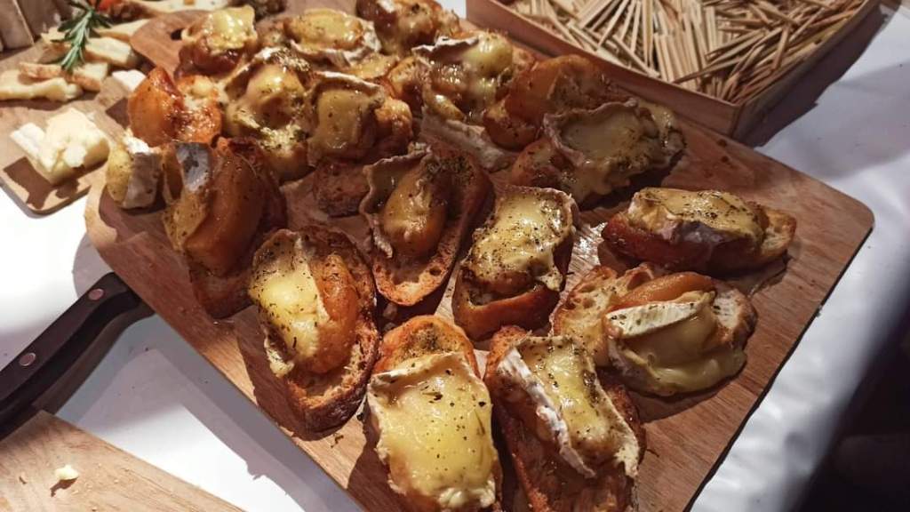 Η Βουργουνδία, εκτός από εκλεκτούς οίνους κέρασε τους συμμετέχοντες τερίνα με ζαμπόν, gougères au fromage, δηλαδή μικρές αλμυρές σφολιάτες με τριμμένο τυρί, καρότα à la bourguignonne -μια σαλάτα από μαγειρεμένα καρότα και κρεμμύδια- και oeuf parfait meurette -φανταστείτε ένα άψογο αυγό ποσέ- με σάλτσα κόκκινου κρασιού. Το τυρί ήταν το Brillat-Savarin, λαχταριστό, κρεμώδες και ελαφρώς ξινό, που παράγεται όλο το χρόνο κυρίως στη Βουργουνδία.
