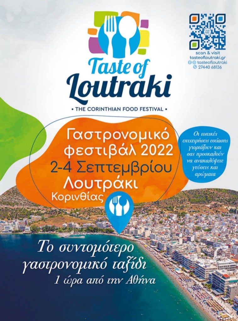 Ξεκινά την Παρασκευή 2 Σεπτεμβρίου και θα διαρκέσει ως την Κυριακή 4 Σεπτεμβρίου, ένα μοντέρνας φιλοσοφίας Γαστρονομικό Φεστιβάλ, το Taste of Loutraki, που θα διεξαχθεί στο γοητευτικό Λουτράκι, με πρωταγωνιστές τις τοπικές επιχειρήσεις εστίασης και φιλοξενίας! Συγκεκριμένα, περισσότερες από 30 τέτοιου είδους επιχειρήσεις της πόλης, δημιουργούν ένα ξεχωριστό ελληνικό menu, σε ειδική τιμή για όλους όσοι θα σπεύσουν να το δοκιμάσουν, κατά το προαναφερθέν τριήμερο, 2 – 4 Σεπτεμβρίου. Ακολουθούν ονομαστικά και αλφαβητικά, προκειμένου να οργανώσετε καλύτερα την εξόρμησή σας, όλα τα εστιατόρια, τα ζαχαροπλαστεία και τα ξενοδοχεία, που συμμετέχουν ενεργά στην δράση αυτή, προσφέροντας τοπικές συνταγές και προϊόντα, σε ειδική εκπτωτική τιμή για το ερχόμενο Σαββατοκύριακο: