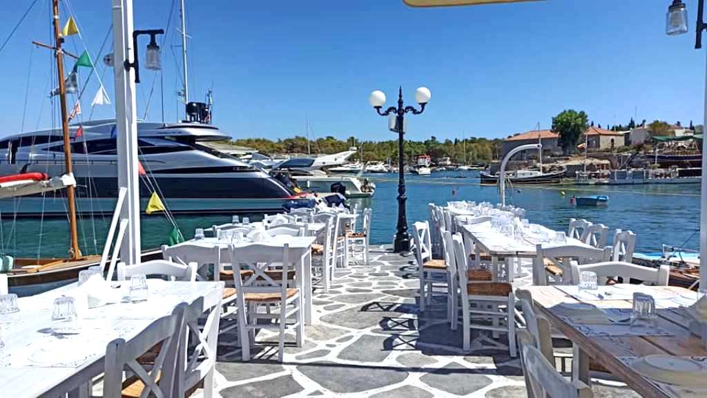 …ενώ δεν είναι λίγες και οι θαλαμηγοί, αλλά και τα κάθε είδους σκάφη, που δένουν ακριβώς δίπλα στον πολύφερνο μώλο, επιτρέποντας στους επιβάτες τους να απολαύσουν την εξαιρετική κουζίνα του Καπελογιάννη.