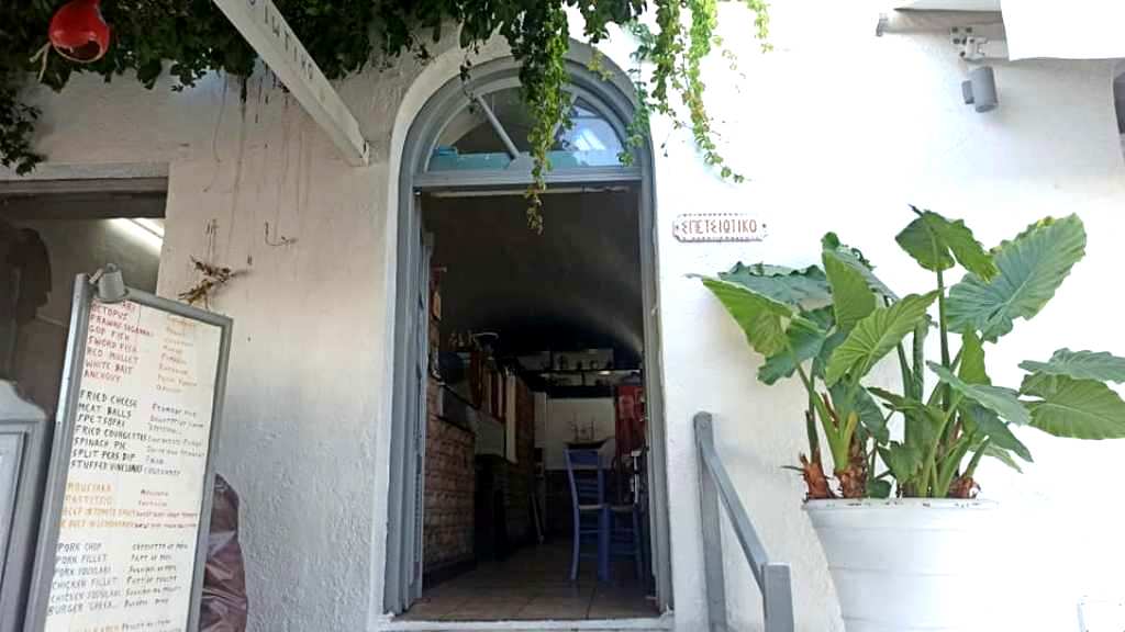 Η είσοδος του χειμερινού Σπετσιώτικου, απ’ όπου εξέρχονται τα πολυαναμενόμενα μεζεδάκια μας…