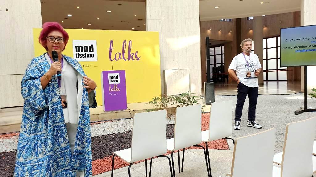 Με ένα από τα μεγαλύτερα περίπτερα στο κομβικότερο σημείο της έκθεσης, δήλωσε δυναμικά παρόν το Athens Fashion Club & School, όπου παρουσιάστηκαν 19 συνολικά δημιουργίες σπουδαστών και αποφοίτων της διακεκριμένης αυτής Σχολής, καθώς και της σχεδιάστριας Μαρίας Βυτινίδου, που αποτελεί την ψυχή του συγκεκριμένου Σχολείου και του όλου project και συνιδιοκτήτριάς του επίσης, μαζί με τον Βαγγέλη Δημητρακόπουλο. Ενδεικτική της σημασίας που δίνεται στην έκθεση αυτή, από την πλευρά της Πρεσβείας της Πορτογαλίας στην Ελλάδα, ήταν η παρουσία του Λωράν Αρμάου, Εμπορικού και Οικονομικού Ακολούθου της Πρεσβείας και Διευθυντή του AICEP, ο οποίος μας δήλωσε μεταξύ άλλων: «Το μεγάλο project που βρίσκεται σε εξέλιξη αυτή την περίοδο, με την επωνυμία MADE IN PORTUGAL Naturally – Portuguese Sustainable Fashion by Greek Emerging Designers, έχει σχέση με τη βιώσιμη μόδα. Δώδεκα εργοστάσια της Πορτογαλίας προσέφεραν, δωρεάν, στους φοιτητές της Σχολής Μόδας Athens Fashion Club, ανακυκλώσιμα υφάσματα προκειμένου να ετοιμάσουν την collection τους, η οποία παρουσιάζεται αρχικά στη διεθνή έκθεση Modtissimo, στο Porto και αμέσως μετά θα παρουσιαστεί στην Αθήνα, σε catwalk στην Πρεσβευτική κατοικία, ενώ θα ακολουθήσει η παρουσία μας στην εβδομάδα μόδας Athens Xclusive Designers Week, τον Νοέμβριο».