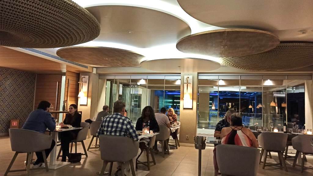 Στο A la Carte εστιατόριο Blue Bay, που βρίσκεται ακριβώς εδώ, στην ‘ακτή’ του Atlantica Imperial Residences, θα έχετε την ευκαιρία να απολαύσετε μια κορυφαία ποικιλία γευστικών φρεσκοπαρασκευασμένων επιλογών τόσο για πρωινό -και μάλιστα εκτεταμένης διάρκειας για όσους ξυπνούν αργά-, όσο και για μεσημεριανό γεύμα, στο πλαίσιο του οποίου μπορείτε να επιλέξετε από ένα πλούσιο menu με snacks ή να παραγγείλετε ένα πιάτο της ώρας. Όσο για το βραδινό, εκεί πια μιλάμε για μία αληθινή γαστρονομική εμπειρία και ιεροτελεστία, που κινείται στα όρια της διεθνούς κουζίνας, με εξαιρετικά υψηλού επιπέδου γευστικές προτάσεις.