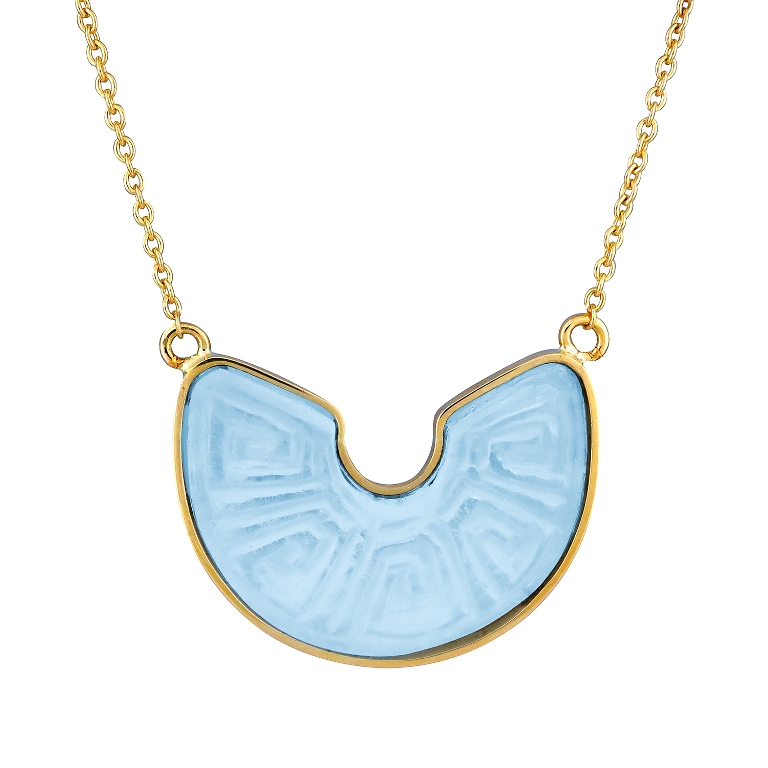 Ένα μενταγιόν με «μούσα» του τη δροσοσταλίδα, που πέφτει απαλά στη γη, όπως και αυτό το κόσμημα πέφτει απαλά στον πιο όμορφο λαιμό, το γυναικείο.