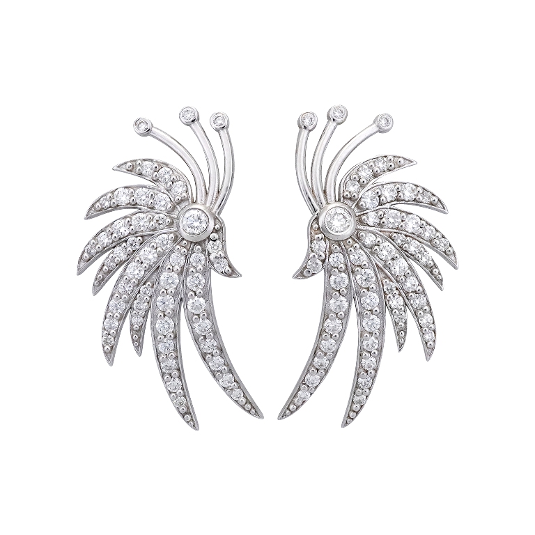 Τα φτερά των αγγέλων. Οι άγγελοι είναι μοναδικοί, σπάνιοι και απρόσιτοι, έτσι ακριβώς όπως και το ζευγάρι αυτών των σκουλαρικιών, που κοσμούνται με 96 διαμάντια σπάνιας καθαρότητας και χρώματος.
