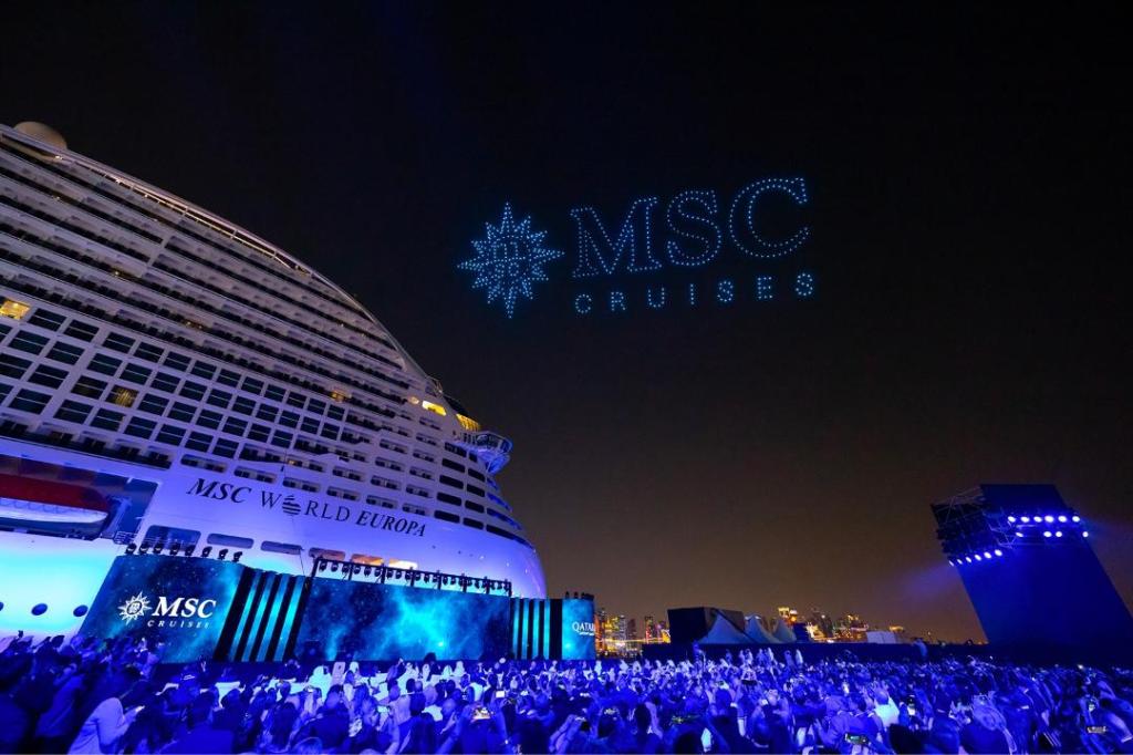 Η MSC Cruises σε συνεργασία με την Qatar Airways εγκαινίασε το MSC World Europa με μια φαντασμαγορική τελετή στο λιμάνι της Ντόχα και, όπως επιβάλλει η παράδοση, με μια «ιπτάμενη σαμπάνια». Εντυπωσιακά οπτικοακουστικά εφέ (laser light show), συναυλία με τον Matteo Bocelli, πυροτεχνήματα με φόντο τους φωτισμένους ουρανοξύστες στην Ντόχα και το συναρπαστικότερο όλων, 600 drones σε μια μοναδική χορογραφία στον ουρανό, μάγεψαν τους καλεσμένους και έστειλαν ένα δυνατό μήνυμα για το μέλλον της κρουαζιέρας από την MSC Cruises: ανακαλύψτε τον κόσμο με την MSC Cruises, σεβασμός στο περιβάλλον, αγάπη για το ταξίδι.