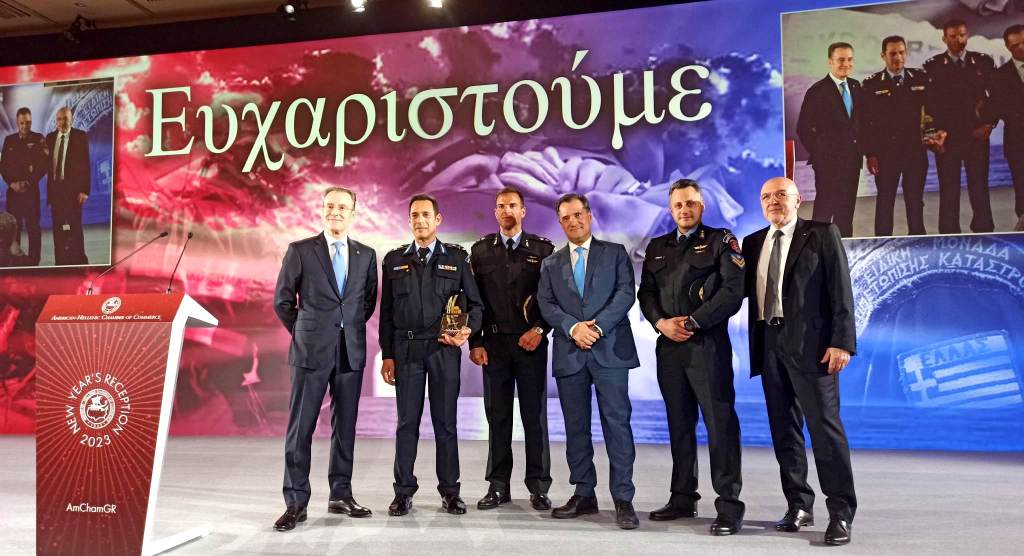 Το Ελληνοαμερικανικό Εμπορικό Επιμελητήριο απένειμε τιμητική πλακέτα στον Χρήστο Σημιακάκη, Διοικητή της 1ης ΕΜΑΚ, ως ελάχιστη ένδειξη αναγνώρισης και βαθιάς εκτίμησης προς τη συγκεκριμένη μονάδα, για την αλληλεγγύη και την αυτοθυσία που επέδειξαν τα μέλη της κατά την άσκηση του διασωστικού τους έργου στην Τουρκία, μετά τον πρόσφατο καταστροφικό σεισμό.