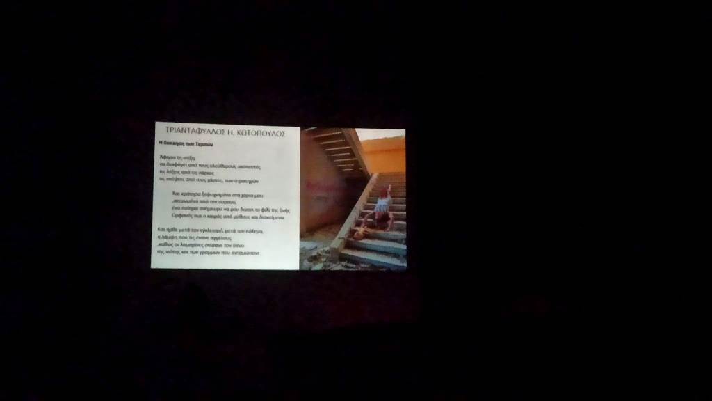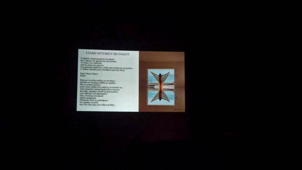 Ακολούθησε η προβολή φωτογραφικών έργων της γνωστής καλλιτέχνιδος Peny Delta, εμπνευσμένων από τα ποιήματα δημιουργών, όπως η Καλλιτεχνική Διευθύντρια του Φεστιβάλ Ελένη Αρτεμίου-Φωτιάδου…