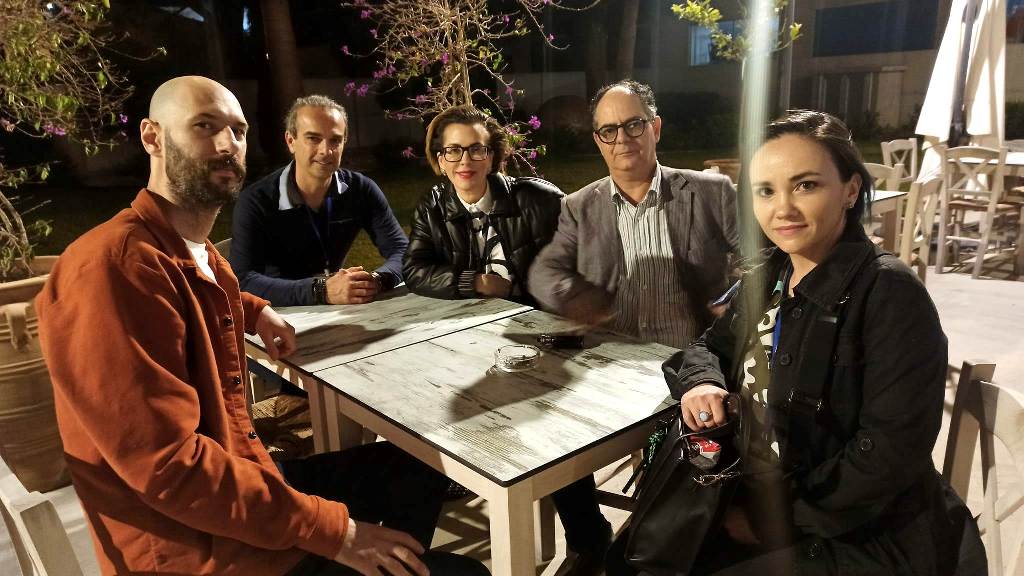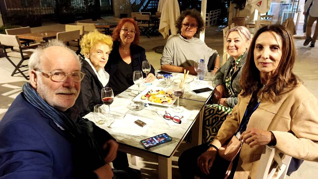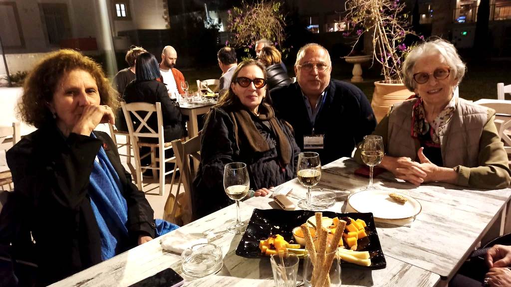 Μία ακόμα παρέα στα φιλόξενα τραπεζάκια του «Αίθριον» με τους (από αριστερά): Ανδρέα Κώστα – εκπαιδευτικό και μέλος της Οργανωτικής Επιτροπής του Φεστιβάλ, Μαρία Αντωνίου από το Xenos Travel by Royal Holidays που στηρίζει το Φεστιβάλ, Γιώτα Δημητρίου – δημοσιογράφος από το Scala Times και Γιάννης Φωτιάδης – Διευθυντής Culture and Αrt.