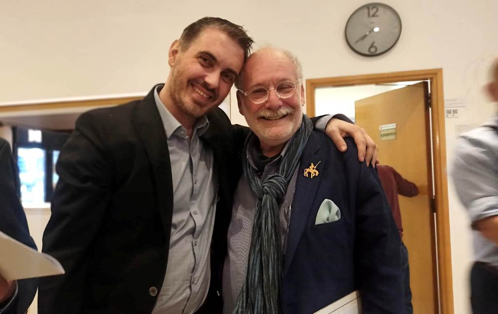 Ο Μιχάλης Χατζηγιάννης με τον Αντώνη Δ. Σκιαθά, Πρόεδρο του «Γραφείου Ποιήσεως», Διευθυντή του culturebook.gr, μέλος της Επιστημονικής Επιτροπής του Διεθνούς Φεστιβάλ Ποίησης Λάρνακας και ιδρυτή του Διεθνούς Φεστιβάλ Ποίησης Πάτρας.