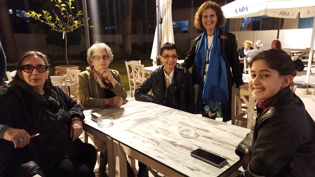 …λίγο πριν όλοι μεταφερθούν για τη συνέχεια της βραδιάς στο «Αίθριον» του εντυπωσιακού Πολυχώρου Πολιτισμού και Δημιουργικότητας Λάρνακας. Στη φωτογραφία με την όμορφη ποιητική παρέα, από αριστερά: Λίνα Νικολακοπούλου, Αλεξάνδρα Ζαμπά, Μαρία Καντωνίδου, Maria Caracausi, Φρατζέσκα-Ελευθερία Τσούνη.