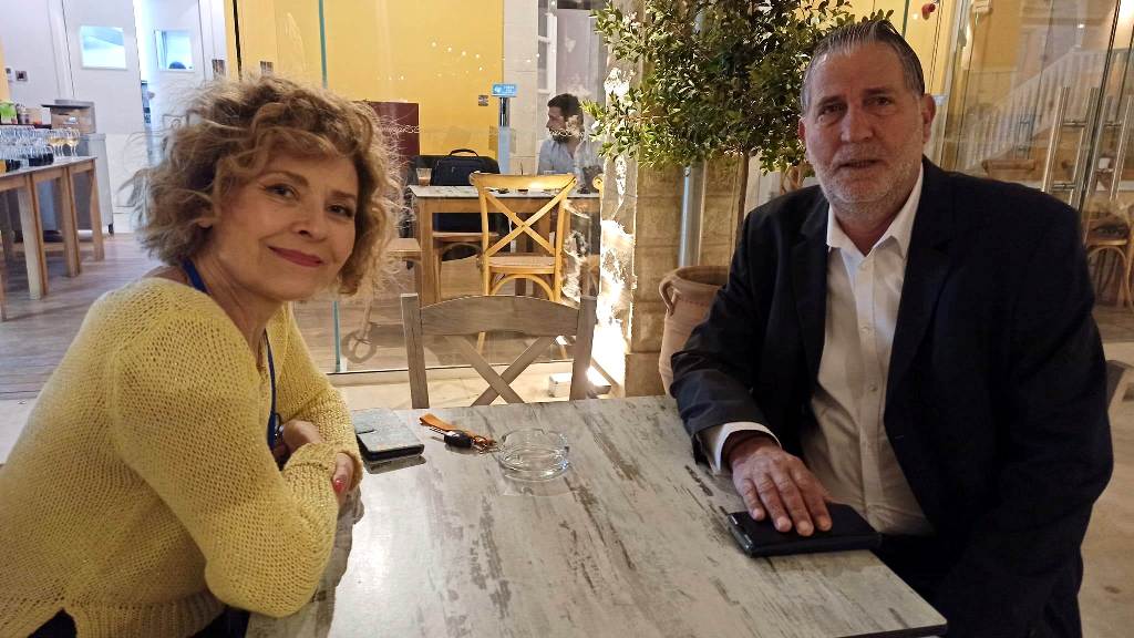 Η γνωστή ηθοποιός και σκηνοθέτιδα Μόνικα Μελέκη με τον Πολιτιστικό Λειτουργό Δήμου Λάρνακας Άκη Ιωάννου.