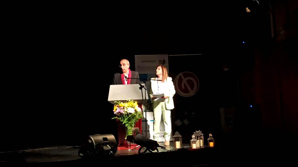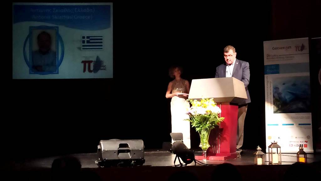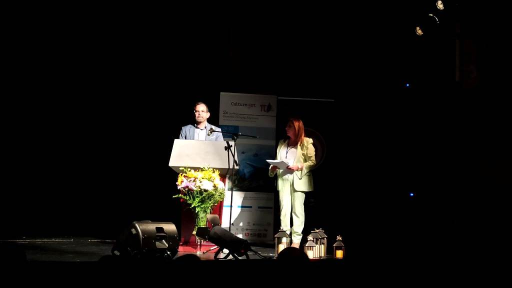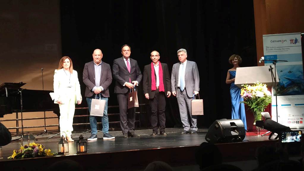 Ακολούθησε η απονομή τιμητικής πλακέτας στον Υφυπουργό Πολιτισμού Κύπρου Μιχάλη Χατζηγιάννη από τον Πρόεδρο του Φεστιβάλ Καθηγητή Τριαντάφυλλο Η. Κωτόπουλο και την Καλλιτεχνική του Διευθύντρια Ελένη Αρτεμίου-Φωτιάδου. Να σημειώσουμε εδώ, ότι την εκδήλωση τίμησαν επίσης με την παρουσία τους οι Βουλευτές Λάρνακας Ανδρέας Αποστόλου, Ανδρέας Πασουρτίδης και Πρόδρομος Αλαμπρίτης, καθώς και ο Βουλευτής Αμμοχώστου Γιώργος Κουκουμάς.