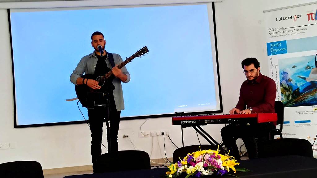 Οι ταλαντούχοι νεαροί καλλιτέχνες Κυριάκος Κώστα στα πλήκτρα και Μιχάλης Λυσιώτης στην κιθάρα και το τραγούδι, απέδωσαν με μοναδικό τρόπο αγαπημένα τραγούδια σε στίχους της Λίνας Νικολακοπούλου.
